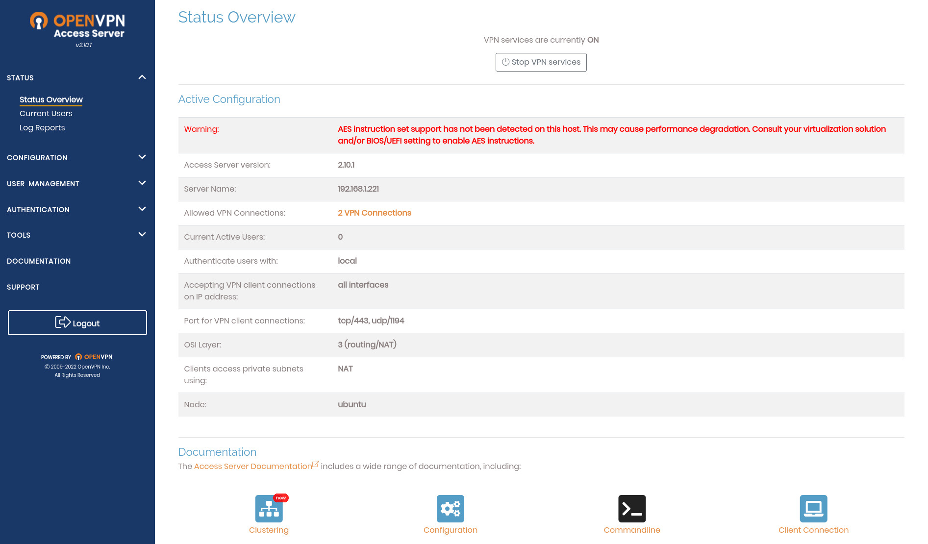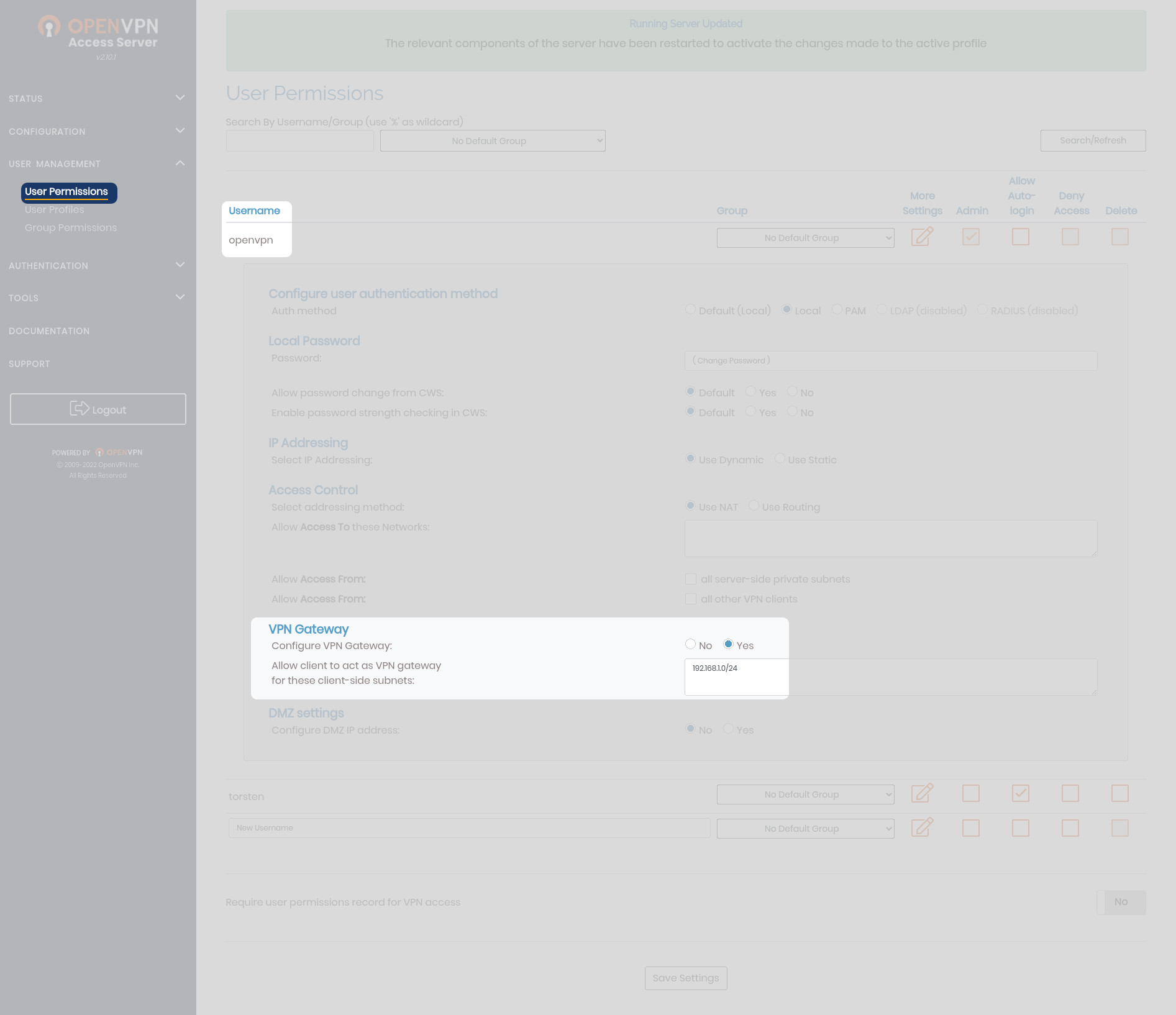 Hierbei nicht übersehen: Das Passwort für den Standard-Admin 'openvpn' steht am Ende der Installation im Terminal. ;)
